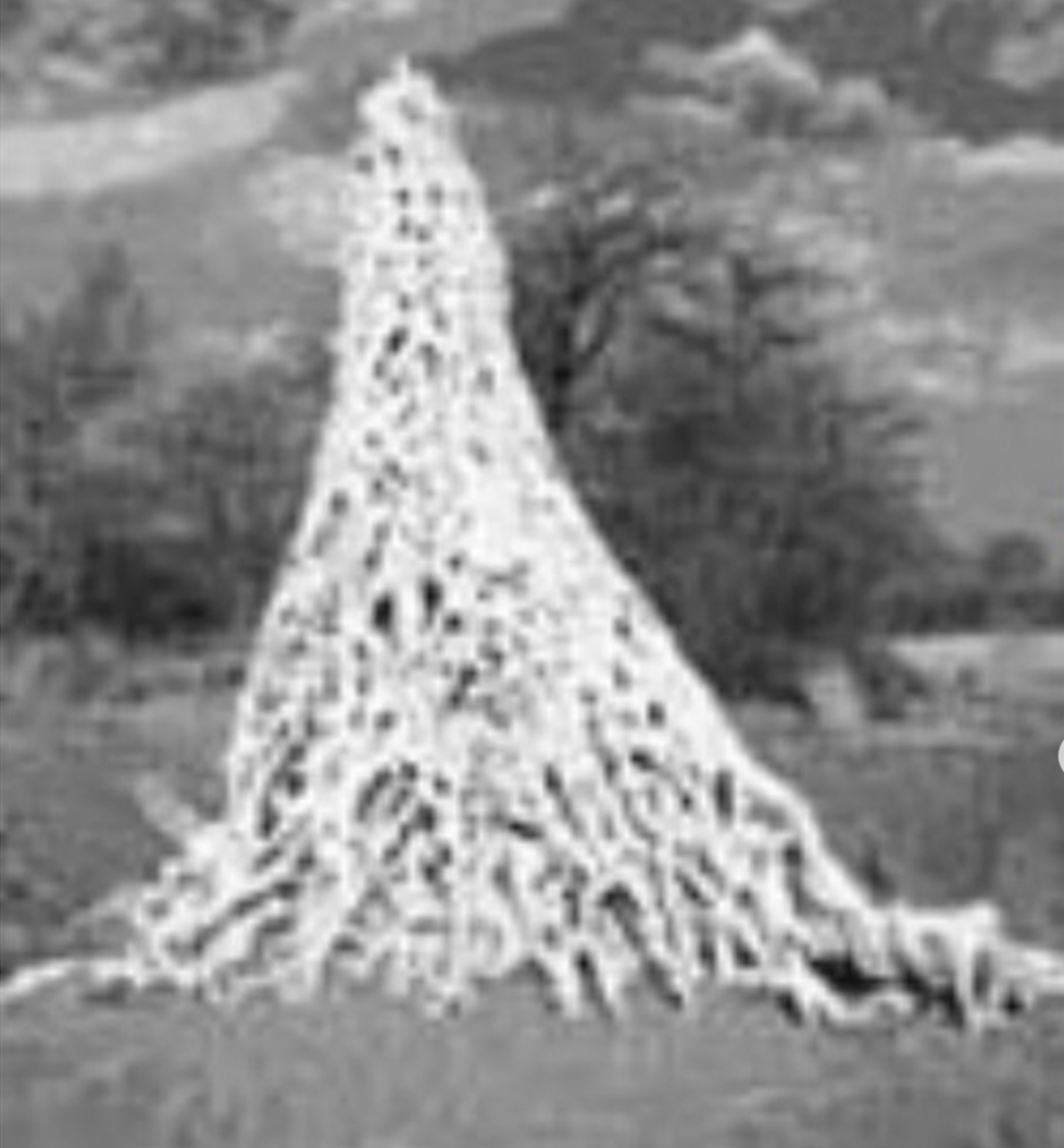 Amitermes, a genus of termites in the family Termitidae, build tall, thin, wedge-shaped mounds that are typically oriented North-facing. The extensive system of tunnels and conduits helps control the climate inside the mound. In Southern Africa, fungus-growing termites, which build enclosed mounds without visible ventilation holes, belong to the genera macrotermes. These macrotermes mounds can be up to 6 meters high above ground. The tip nearly always leans slightly over, and this termite mound also faces North, which can be taken as a reliable direction pointer. Termite Lite, acting as a North Star, illuminates the natural intelligence found in organisms such as the Termite insect.